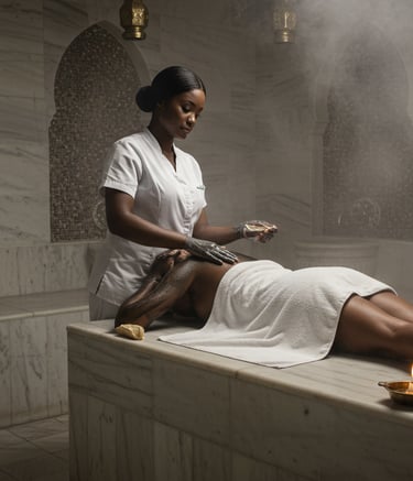 Hammam express/ Gommage bio clarifiant aux agrumes / Enveloppement à la crème de rassoul / Massage relaxant corps à l’huile essentielle d’argan (1H)